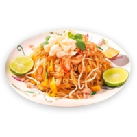 Thin rice noodles with an equal mix of king prawns and tofu strips freshly stir-fried with an egg, carrot, cabbage and bean sprouts all made to order in our exclusive home made Pad Thai sauce. Served with a wedge of fresh lime in a noodle box (there's an option to add a sprinkling of ground peanuts). Pad Thai is the national dish of Thailand and famous the world over as, unlike many other street food dishes, the best Pad Thai has to be made to order and is therefore always freshly cooked.